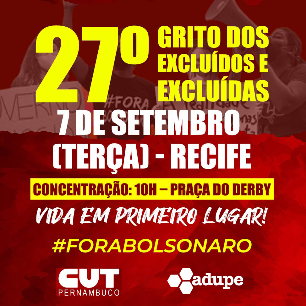 27º Grito dos Excluídos ocorre em contraponto às tradicionais manifestações “cívicas” que marcam o dia da independência. Adupe conclama docentes da UPE a participarem dos atos.