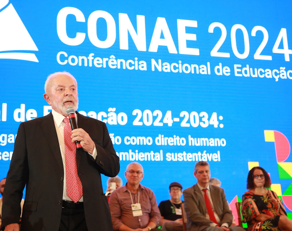O último dia da programação contou com a presença do ministro da Educação, Camilo Santana, de parlamentares e do presidente Lula, que discursou para a plenária e pediu o empenho dos participantes para a aprovação do projeto de lei a ser enviado para o Congresso Nacional para a criação do novo PNE.
