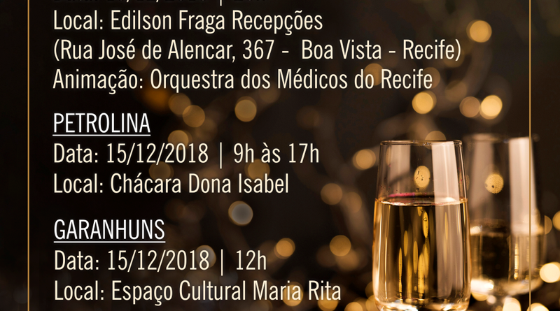 Local: Edilson Fraga Recepções(Rua José de Alencar, 367 – Boa Vista – Recife)Animação: Orquestra dos Médicos do Recife
