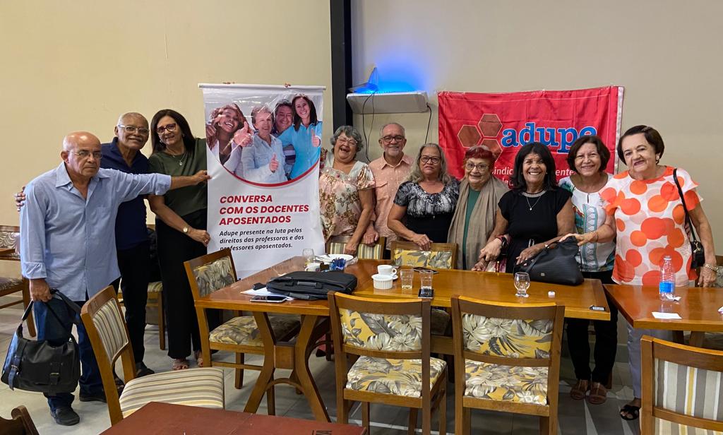 Em Petrolina, a Direção da Adupe manteve reuniões com os docentes na quinta-feira e na sexta-feira (3 e 4 de agosto). Na manhã do dia 3 o encontro foi com docentes aposentados, tendo como centro a discussão sobre implantação da política de atenção aos aposentados e aposentadas, uma das metas previstas na plataforma de trabalho da atual gestão da Adupe.