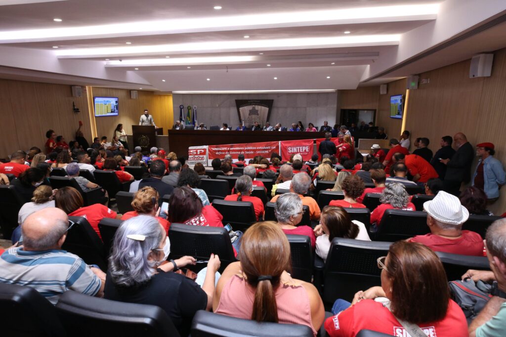 Durante o debate, representantes de entidades dos servidores públicos denunciam o caos no Sistema de Saúde, que atende mais de 180 mil pessoas e corre o risco de ficar inoperante. A presidente da Adupe, Terezinha Lucas, cobrou da governadora Raquel Lyra ações concretas para salvar o Sassepe.