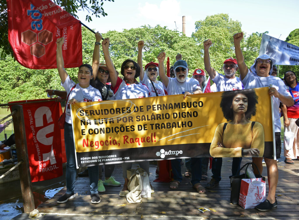 Durante o percurso, representantes de sindicatos de várias categorias do funcionalismo público (entre elas a Adupe) passaram pelos bairros das Graças, Madalena, Ilha do Leite e Coelhos, portando faixas de protesto e gritando “Negocia, Raquel”. Ao longo do trajeto, os manifestantes eram aplaudidos pelas pessoas nas encostas do rio e nas pontes.