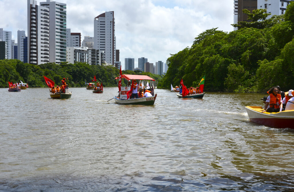 Na manhã de ontem (23/08), a estratégia foi usar o Rio Capibaribe como palco do protesto, com a realização de uma barqueata que percorreu grande trecho do rio. 15 embarcações foram utilizadas no protesto, cuja concentração começou às 8h, no Píer da Ponte do Uchôa, na Jaqueira, Zona Norte do Recife.