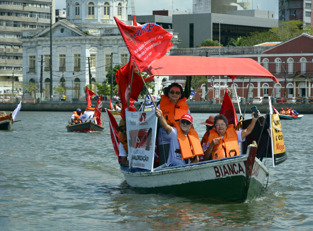 Rio Capibaribe foi o palco do protesto, que saiu do bairro das Graças e terminou no centro do Recife. Adupe marcou presença no ato, com a participação de diretores e representantes de unidades da Região Metropolitana do Recife e do interior do Estado.